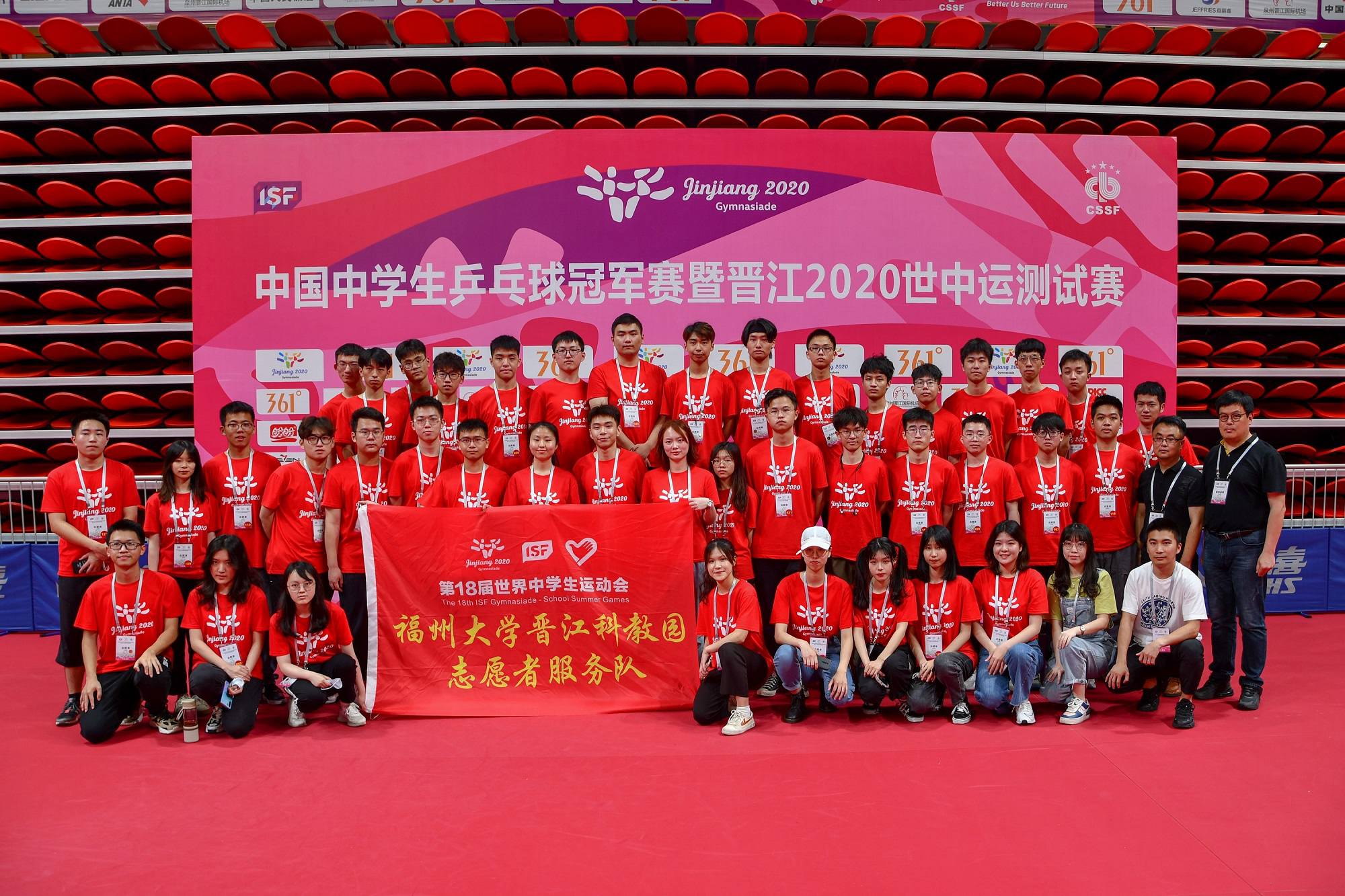 新闻中心讯/5月23日至26日,中国中学生乒乓球冠军赛暨晋江2020世中运测试赛于福大晋江科教园金龙体育馆举行,165名来自福州大学先进制造学院与海洋学院的志愿者完成了为期四天的志愿服务。
