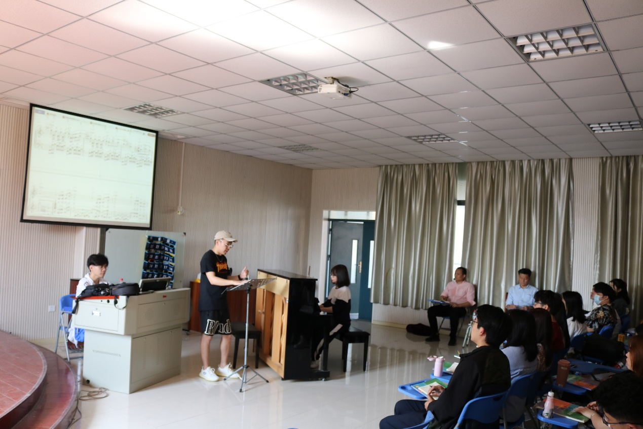 新闻中心讯/为纪念五四爱国运动,弘扬五四精神,传承爱国情怀,4月23日上午,人文学院于学院四楼音乐教室举办了“五四”爱国运动系列讲座:“课堂思政”德育元素——中国钢琴伴奏中的“青春记忆”。本次讲座特别邀请了人文学院党委王群书记作嘉宾分享,林苗老师(钢琴伴奏)与2018级王淏、陈林赫、王睿三位同学(声乐助唱)共同演绎了三个不同版本的《贝加尔湖畔》。