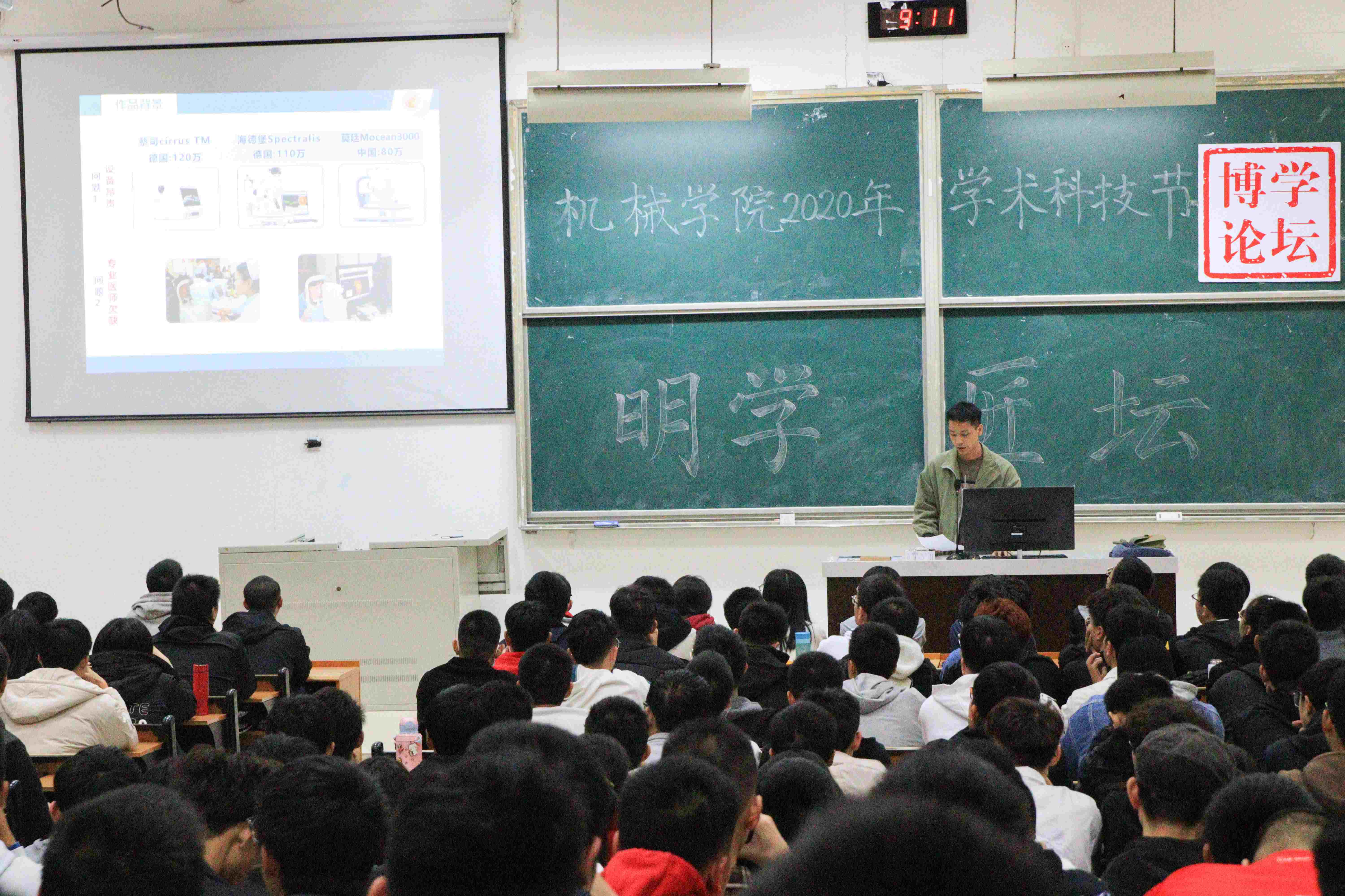 首先,徐帖同学结合自己的亲身经历,从准备时间、组队选题、资料获取等方面进行分享。连超铭同学从创作思想、设计理念、整体方案等三方面,为大家详细介绍了竞赛获奖作品——《糖尿病视网膜黄斑病变光学成像仪》,让大家深入了解作品设计流程。