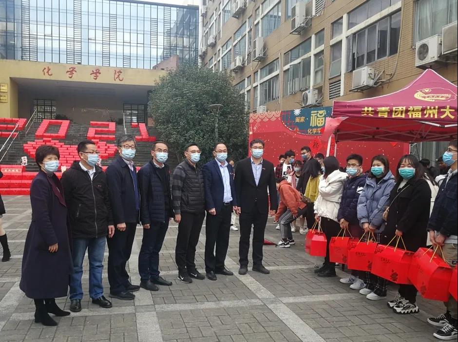 新闻中心讯/金牛奔盛世,紫燕舞新春。2月9日下午,福州大学副校长、化学学院院长王心晨,化学学院党委书记石炳文,党委副书记刘旺,化学学院副院长唐点平、袁耀锋、郑寿添,化学学院工会主席陈珠灵一行,看望慰问了寒假留校学生及在岗教师,并送上暖心礼包与新春祝福。