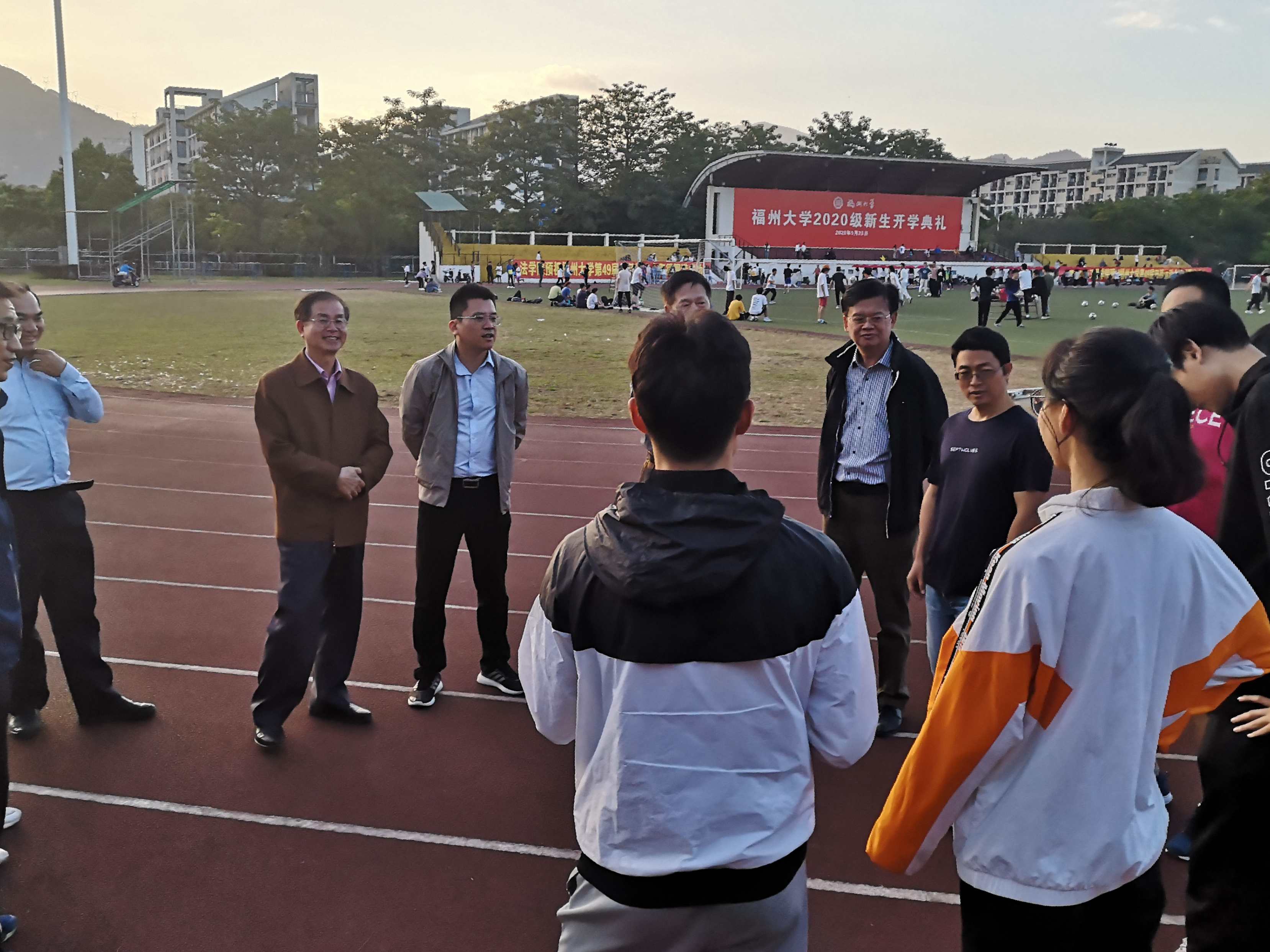 新闻中心讯/秋波澹澹的十一月,即将再次迎来福州大学一年一度的校运会,数计学院的赛前准备工作也在如火如荼地开展。为了给学院参赛得教工和学生运动员们加油鼓劲,关心运动员们的备赛情况,11月5日下午,学院党政领导老师来到了一区田径场慰问正在认真训练的数计健儿们。