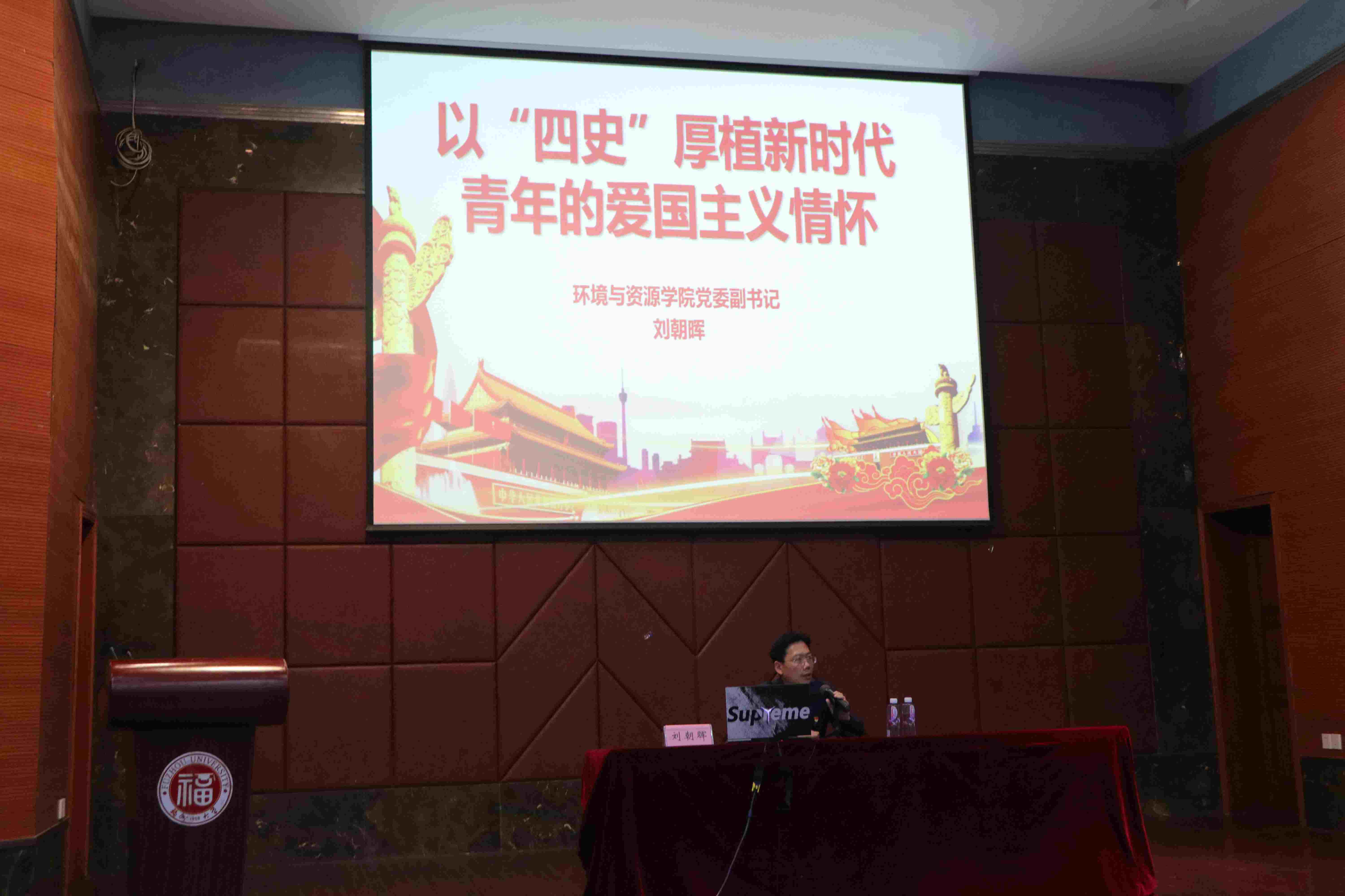 新闻中心讯/11月16日晚,福州大学环境与资源学院第十七期分党校理论学习第一讲“以‘四史’厚植新时代青年的爱国主义情怀”于嘉锡楼嘉锡厅顺利开展,本次理论学习由环境与资源学院党委副书记刘朝晖副研究员主讲。
