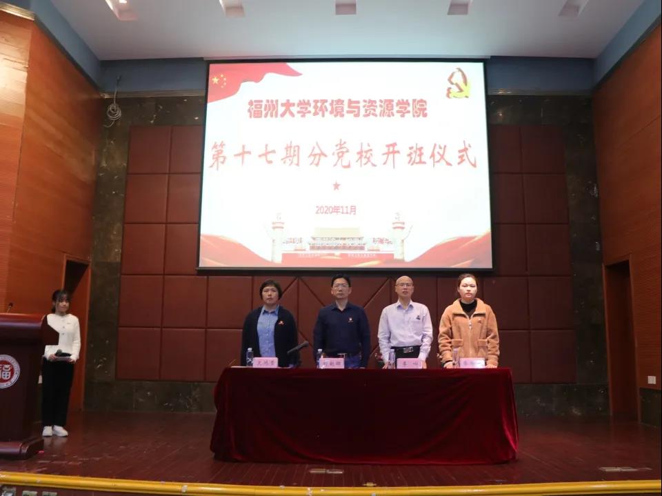 新闻中心讯/为切实保证入党积极分子的培养质量,同时端正入党积极分子的入党动机,提高入党积极分子的党性修养、理论水平及思想道德,2020年11月福州大学环境与资源学院开办了第十七期分党校培训班。11月16日晚,福州大学环境与资源学院第十七期分党校开班仪式在学院党委的精心筹备下于嘉锡楼嘉锡厅举行。环境与资源学院党委副书记刘朝晖、党委办公室主任李响等出席了此次会议,参加此次开班仪式的还有159位本期分党校培训班成员。