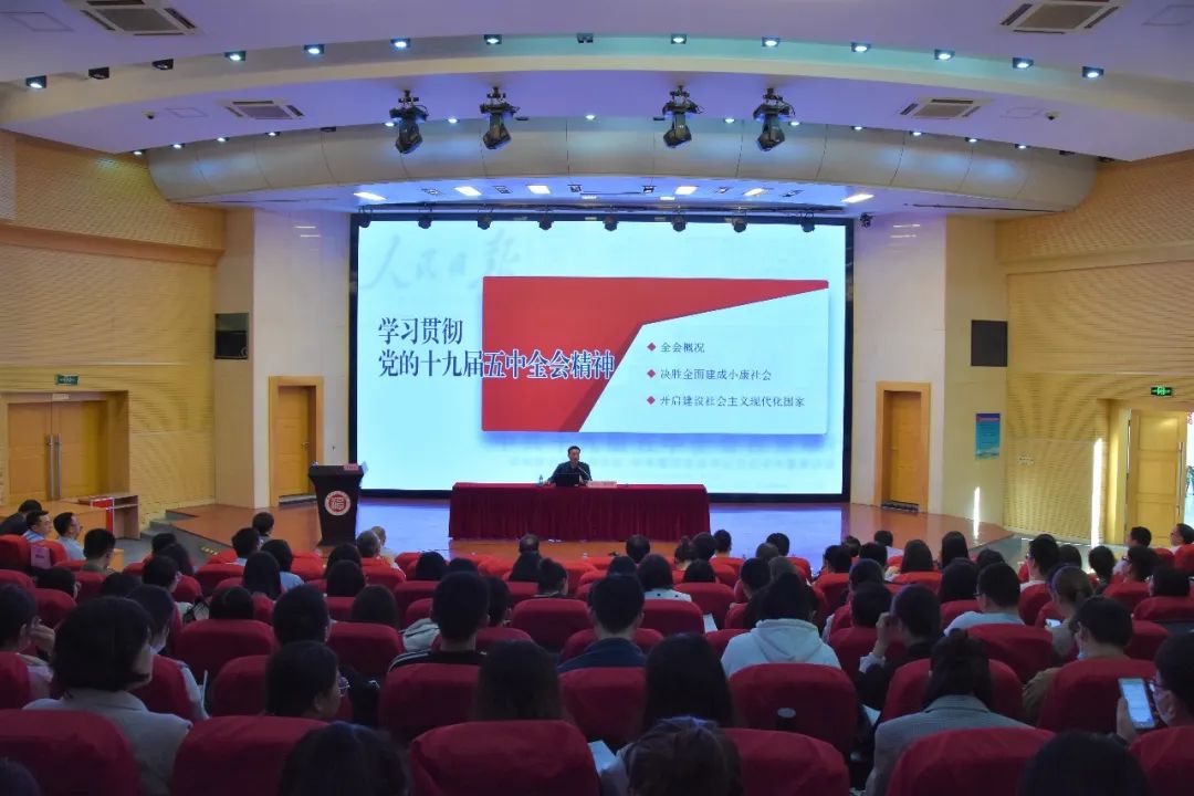 詹志华教授从深刻学习把握党的十九届五中全会精神和《中共中央关于制定国民经济和社会发展第十四个五年规划和二〇三五年远景目标的建议》的新目标新任务等方面,对党的十九届五中全会精神作了全面系统的宣讲和解读,并从高校师生的使命角度诠释如何做好十九届五中全会精神的传播者、守护者和践行者。