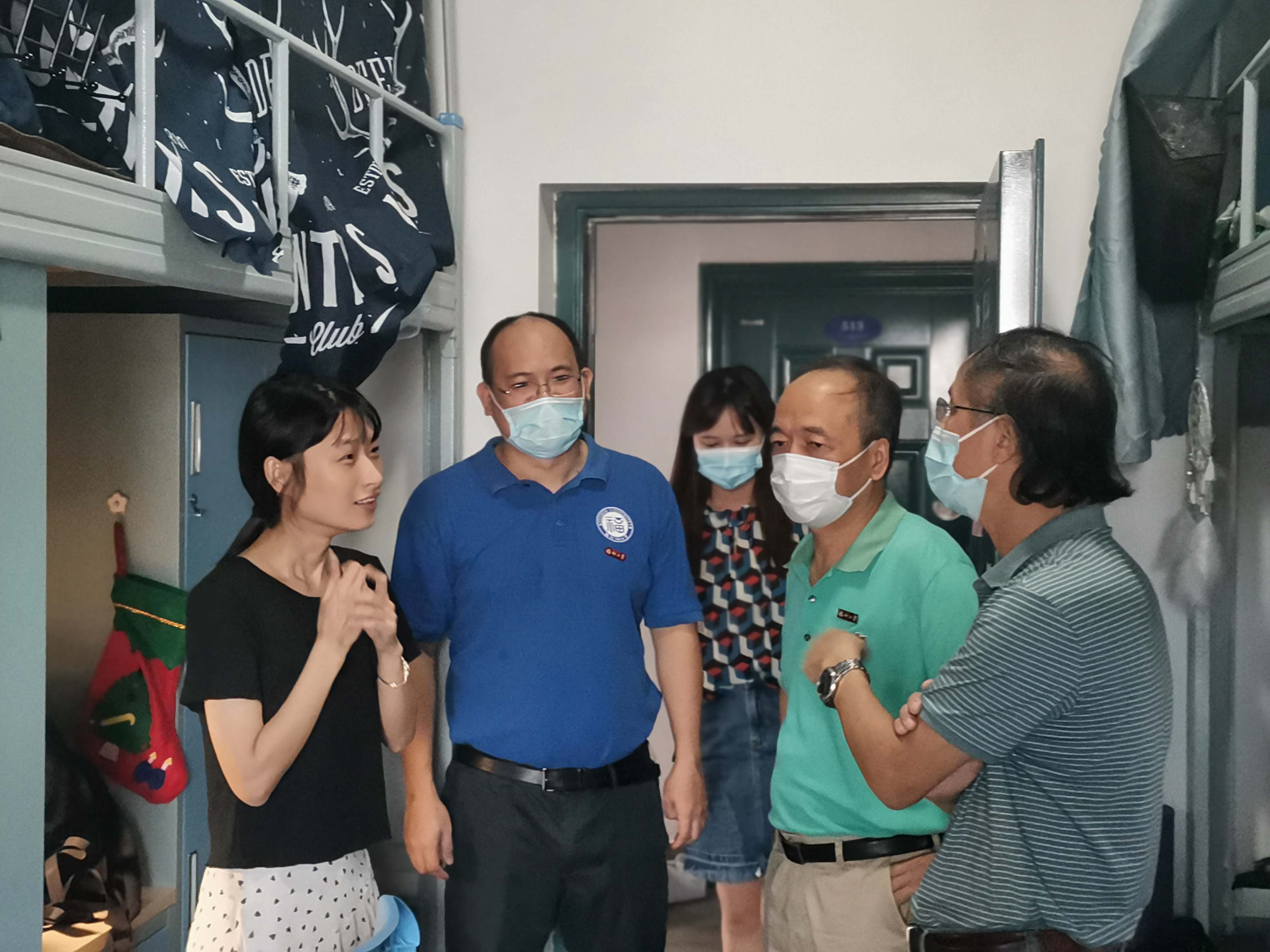新闻中心讯/8月24日上午,外国语学院党委林秋生书记、院长钟晓文教授等学院领导深入学生宿舍,走访看望学院返校研究生。