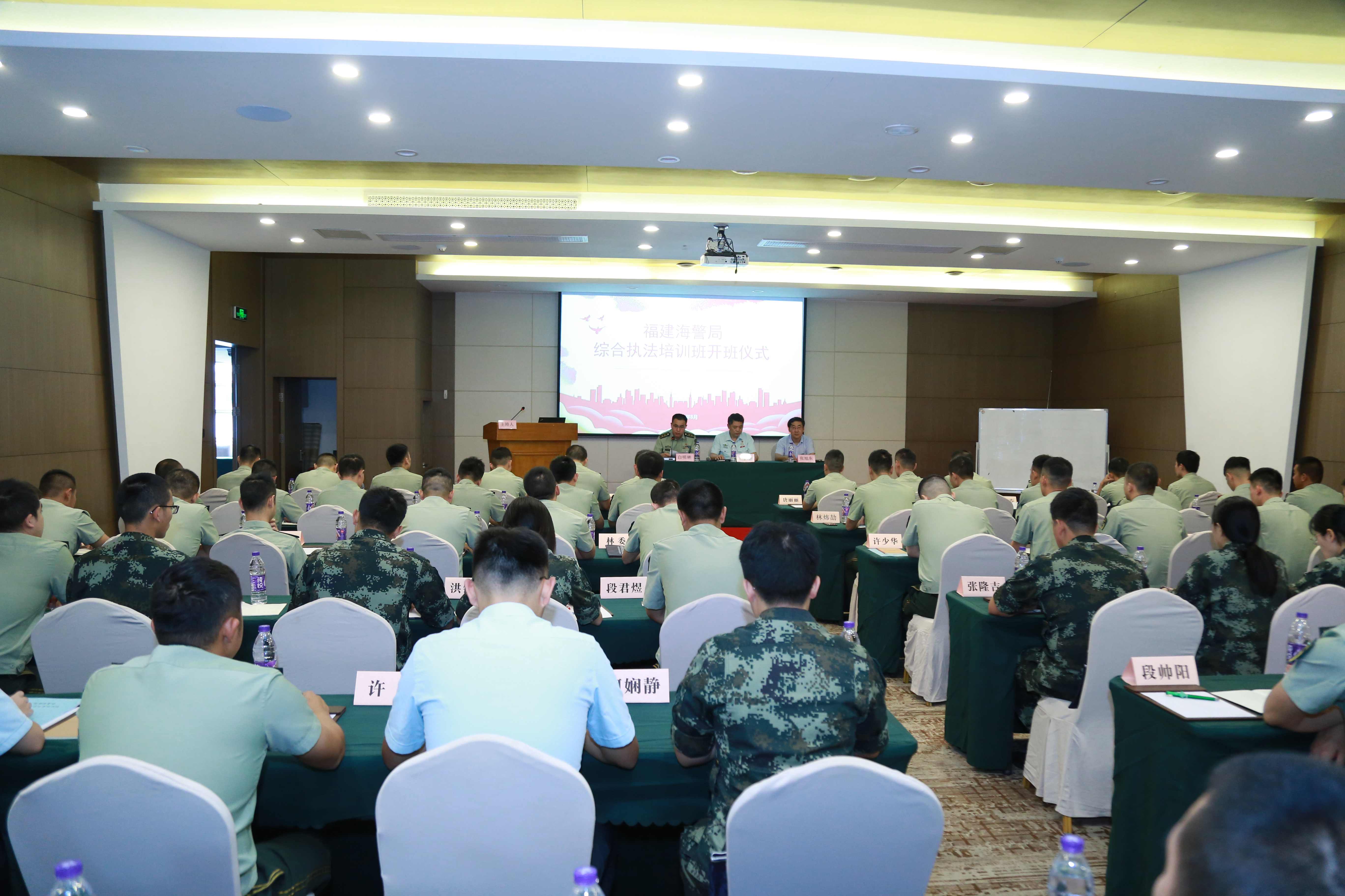 新闻中心讯/8月31日,福建海警局综合执法培训班开班仪式于福建闽院酒店群英学术报告厅顺利举行。福建海警局陈佩国副局长、福州大学法学院副院长张旭东教授、福建海警局执法部白明林副部长出席本次仪式,会议由福建海警局执法部白明林副部长主持。