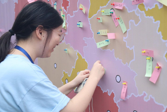 学生会还为新生准备了笔、纸和信封,让报到完毕的小萌新们在签名墙上留下自己的姓名,写下想对四年后的自己说的话投入信箱,并留下与福大的第一张合影。