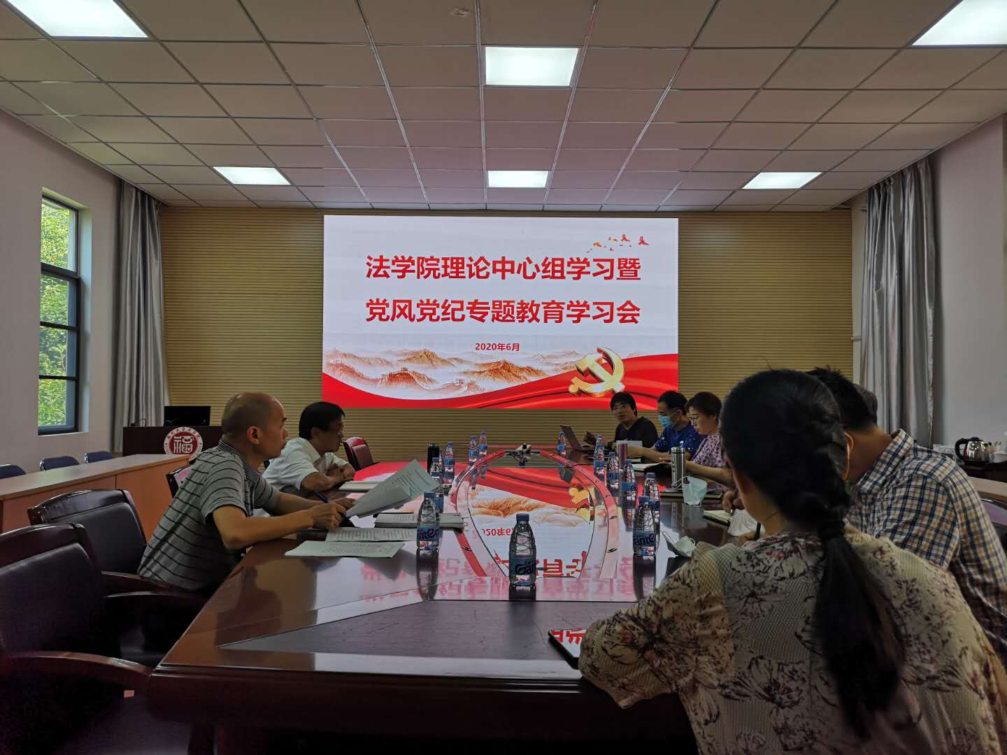 新闻中心讯/6月15日,法学院在院233会议室召开了理论中心组学习暨党风党纪专题教育学习会,院党委理论中心组成员参加了会议,会议由蔡剑英副书记主持。