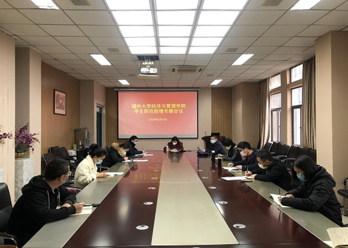 新闻中心讯/3月4日上午,经济与管理学院在经管中楼307召开福州大学经济与管理学院学生防抗疫情专题会议。院党委李玲书记出席会议并讲话。学院全体专职辅导员参与了会议。会议由院党委周强副书记主持。