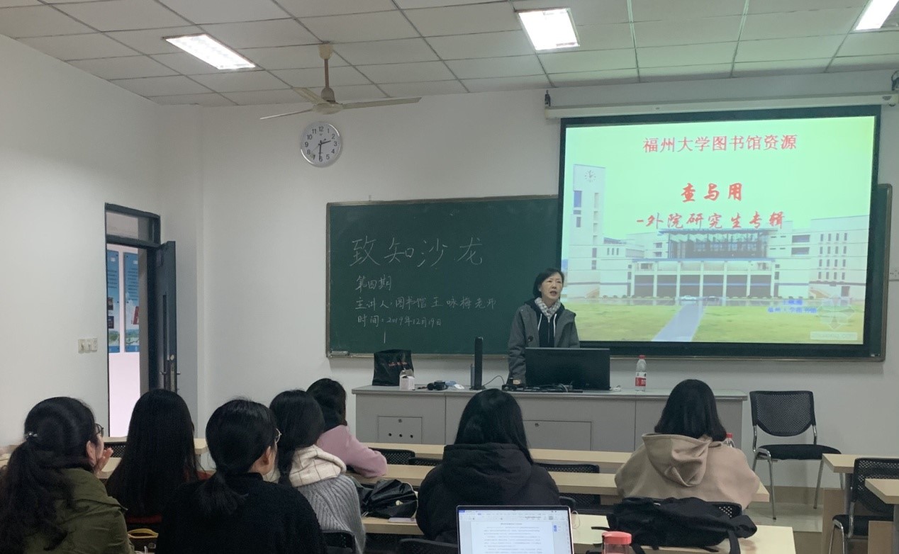 新闻中心讯/12月19日下午,外国语学院于学院405教室成功举办主题为“福州大学图书馆资源查与用”的专题讲座。本次讲座特邀图书馆信息中心王咏梅老师担任主讲人。外国语学院2019级研究生到场聆听交流。
