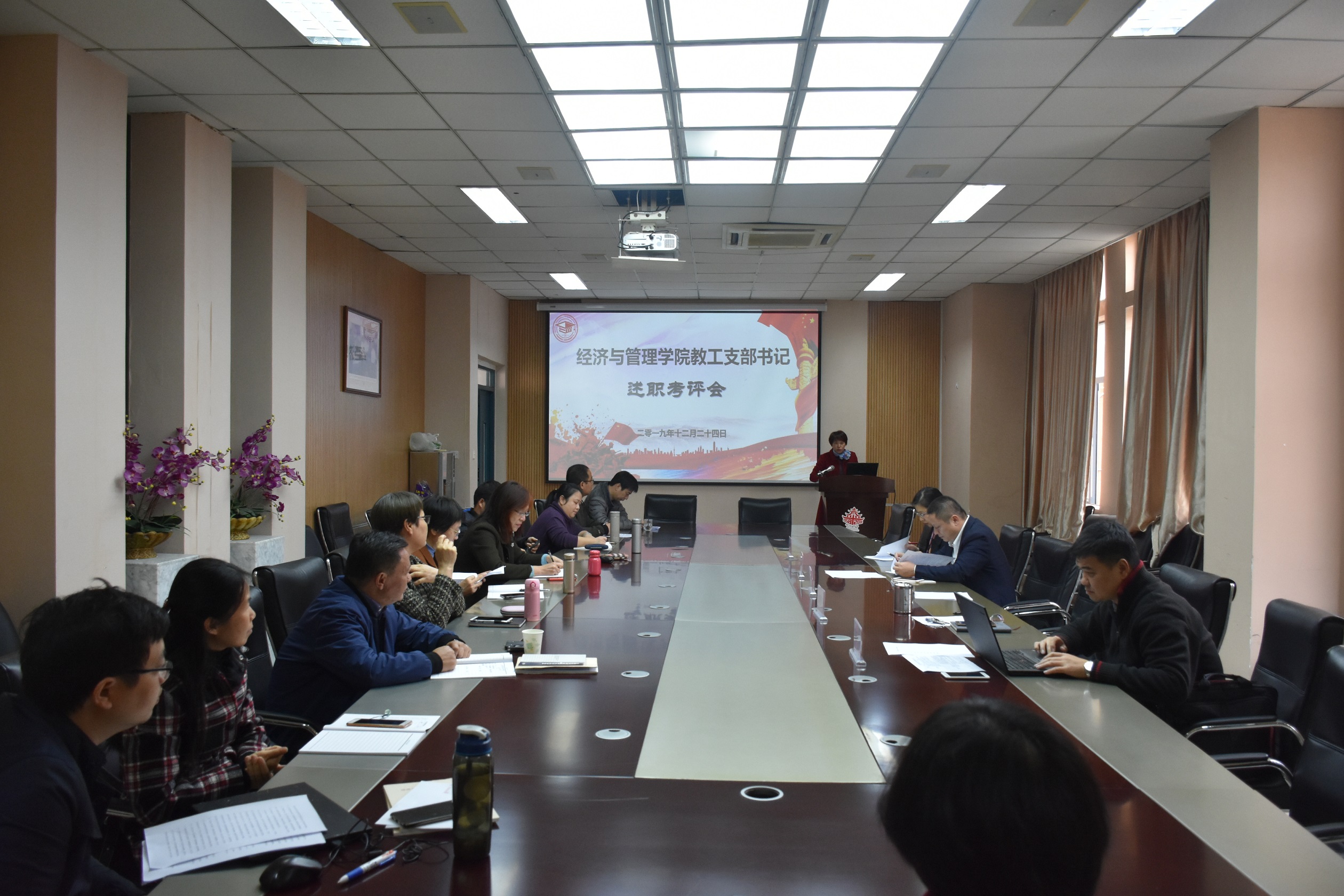 新闻中心讯/12月24日下午,经济与管理学院在经管中楼307会议室举行2019年教工支部书记述职考评会议,学院党委李玲书记、翁穗平副书记、周强副书记、陈可嘉副院长、党委委员许萍教授参加会议。会议由翁穗平副书记主持。