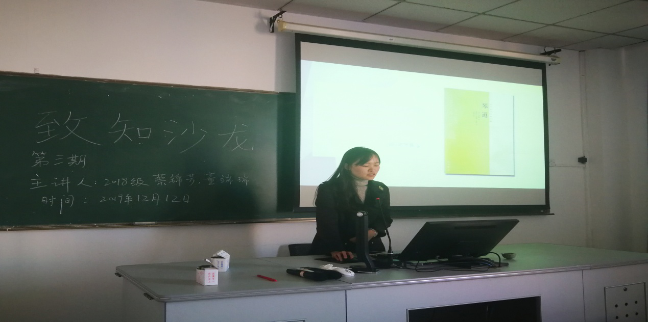 新闻中心讯/12月12日,外国语学院“致知沙龙”第八期学术活动在学院405教室顺利举行。本期学术沙龙由外国语学院2018级英语语言文学专业的蔡锦芳同学和2018级外国语言学及应用语言学专业的董端瑞同学担任主讲人,2019级研究生同学到场聆听交流。
