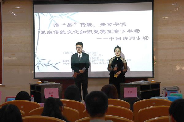 新闻中心讯/11月3日下午,由福州大学党委宣传部、福州大学学生工作部(处)以及共青团福州大学委员会主办,福州大学人文学院、紫金矿业学院承办的“演‘易’传统,共贺华诞”诗词知识竞赛复赛在素拓学术报告厅顺利举办。在此次比赛中,人文学院共有两支队伍成功晋级决赛。