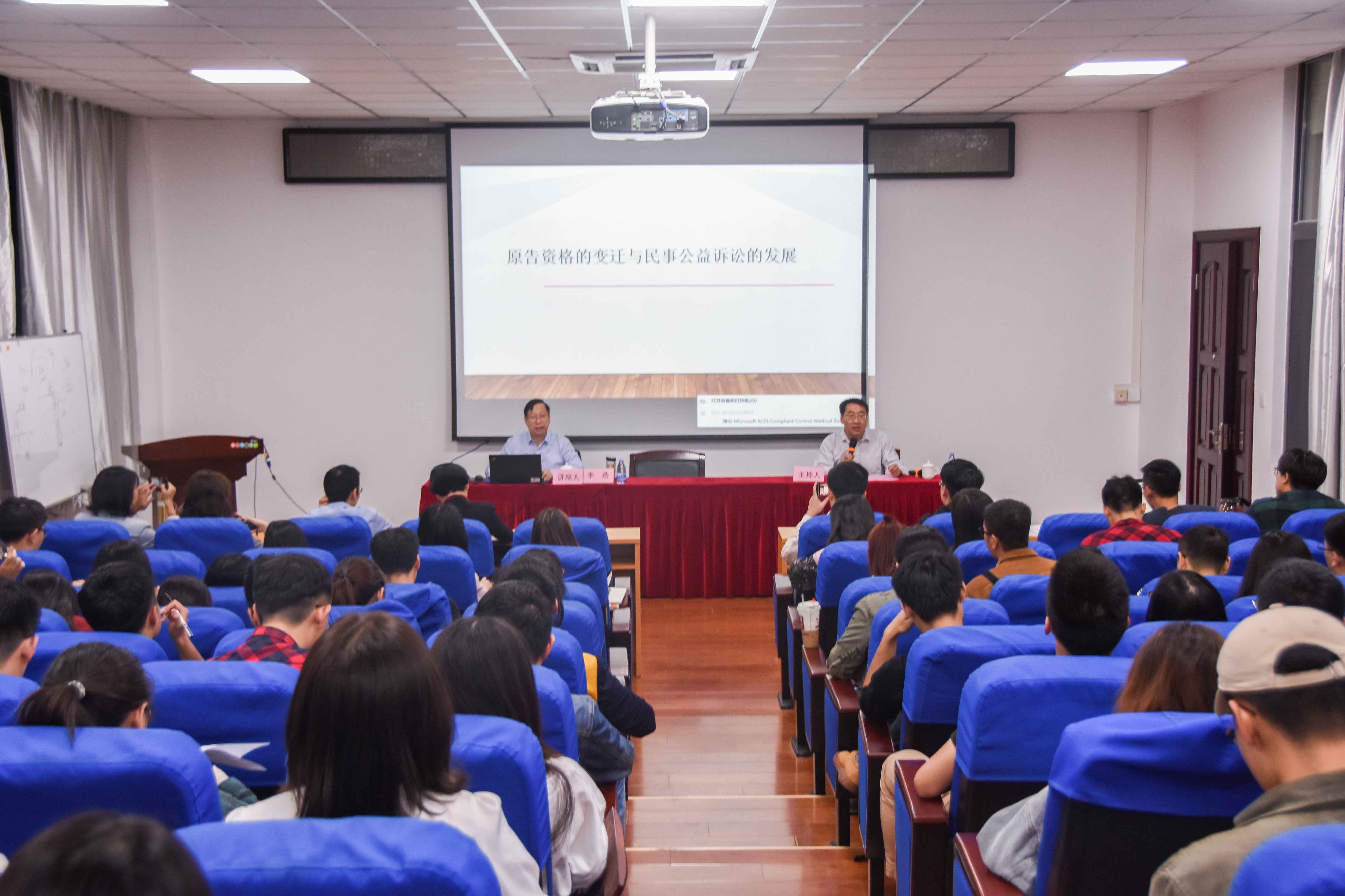 新闻中心讯/11月4日晚,“民事公益诉讼原告资格的拓展暨新问题研究”主题讲座于法学院232学术报告厅成功举行。南京师范大学法学院博士生导师、中国法学会学术委员会委员、中国民事诉讼法研究会常务副会长、最高人民法院特邀咨询员与最高人民检察院专家咨询委员李浩教授担任主讲人,福州大学法学院张旭东教授担任讲座主持人,法学院部分师生参加了本次讲座。