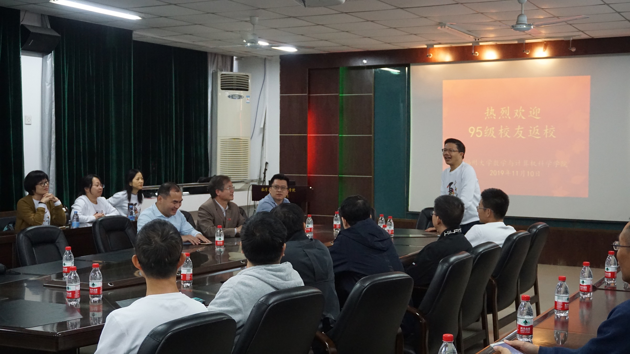 新闻中心讯/11月10日,数计学院1995级计算机专业校友在毕业二十周年之际,返校开展“二十年再聚首”活动,校友们参观新校区,感受学校和学院的巨大变化。学院党委书记陈笃钦、院长郭文忠、网络安全与信息化办公室主任吴英杰、院党委副书记傅茂松等领导老师热情接待了校友们。