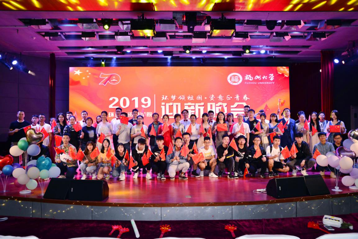 新闻中心讯/10月25日晚,在新中国70华诞之际、在福州大学61岁生日之际,福州大学环境与资源学院携手企业、校友、学院学子在图书馆博学厅举办2019年“环梦颂祖国•资意正青春”迎新晚会。福建六建集团执行总裁陈忠凯先生、人力资源管理中心总经理潘燕女士、人力资源管理中心招聘管理部经理郑宜庭先生、福建科云信息技术有限公司销售代表丁宜洪先生、环境与资源学院党委书记王秀萍老师、副书记刘朝晖老师等领导嘉宾出席晚会。