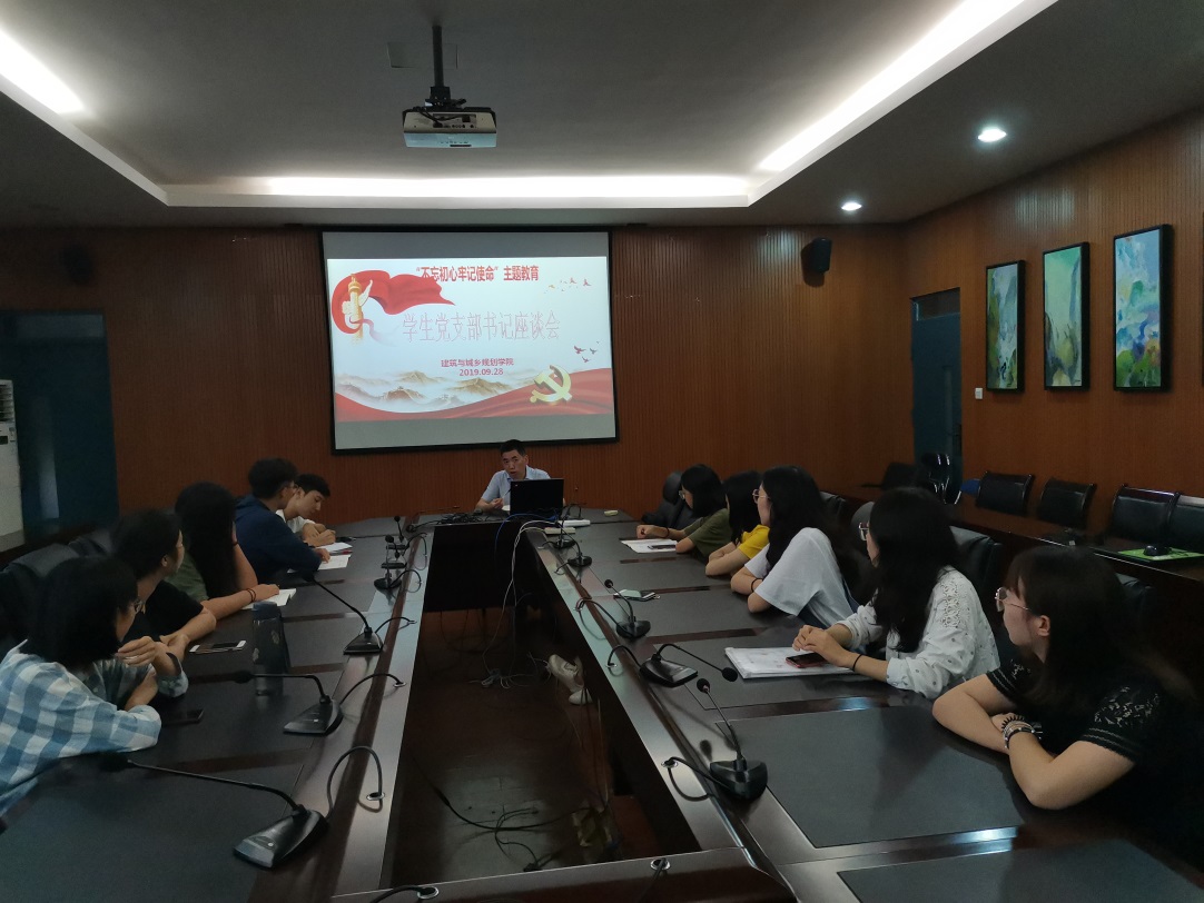 新闻中心讯/根据建筑与城乡规划学院“不忘初心、牢记使命”主题教育工作方案,9月28日晚,学院党委陈小辉书记主持召开学生党支部书记座谈会。