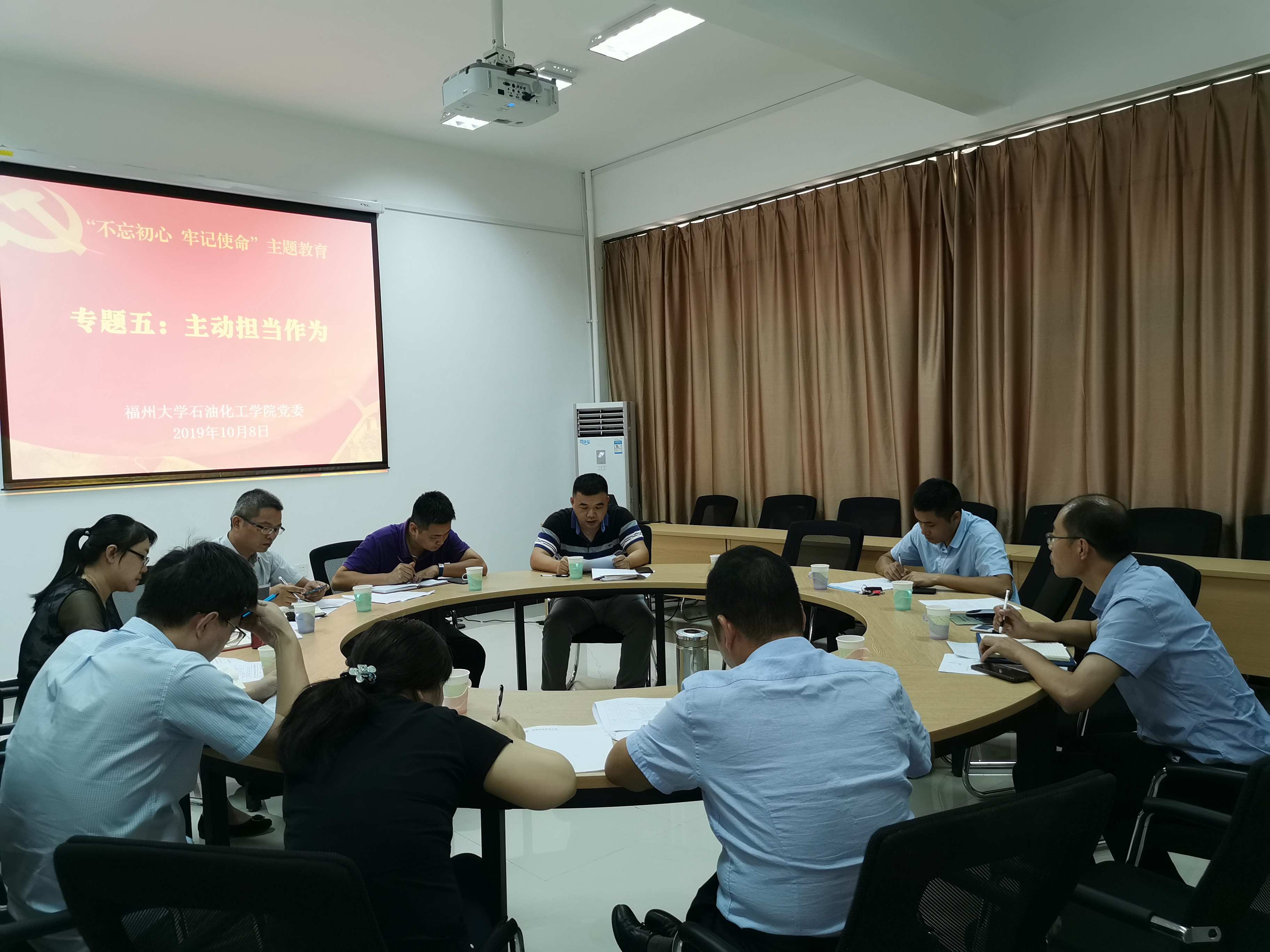 新闻中心讯/10月8日下午,石油化工学院根据“不忘初心、牢记使命”主题教育的工作安排,组织开展“主动担当作为”专题集中学习活动,学院副处级以上领导干部(含校聘)、党委委员参加本次集中学习活动。