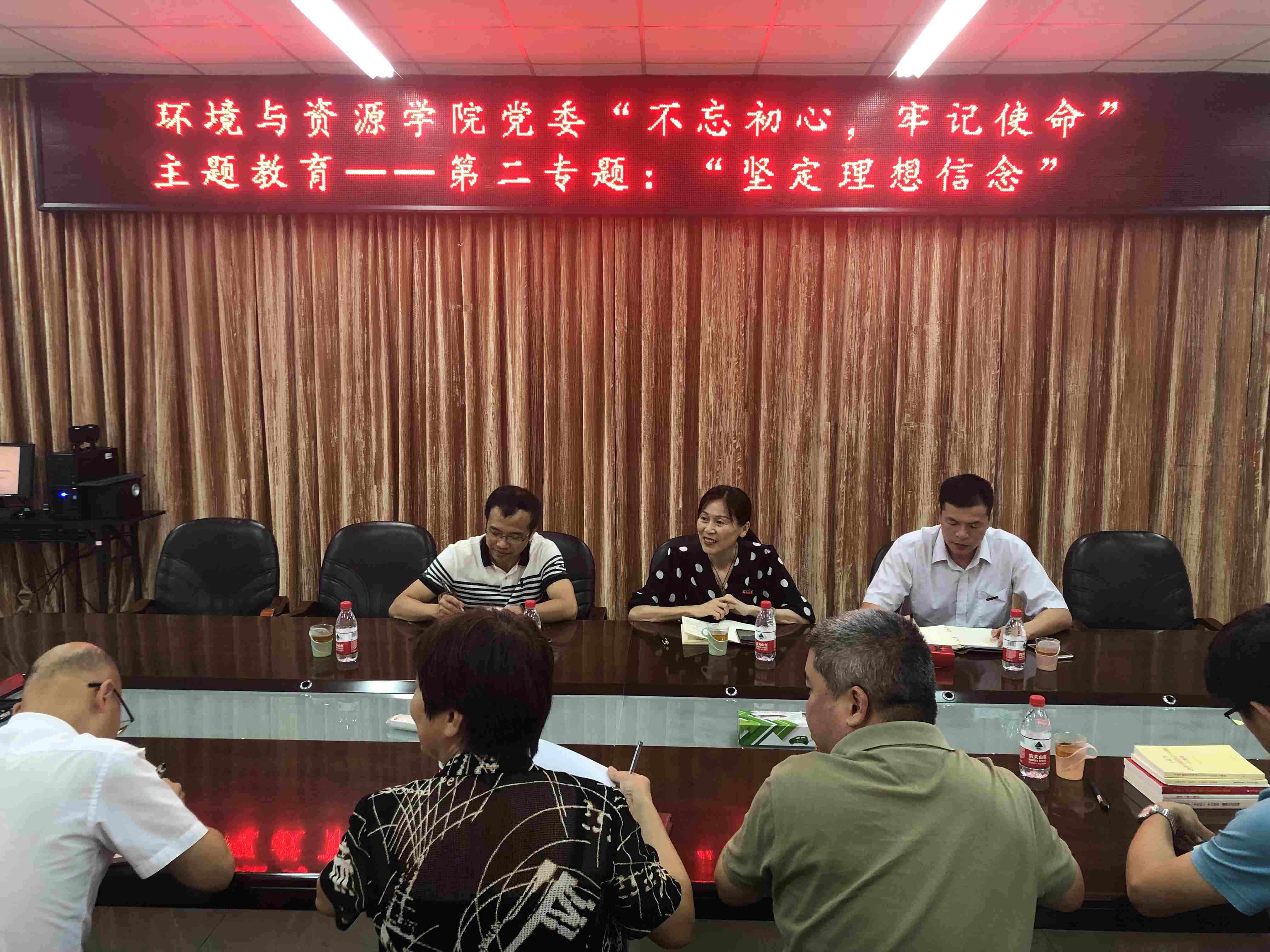 新闻中心讯/9月25日下午,环境与资源学院党委在嘉锡楼314会议室开展“不忘初心、牢记使命”主题教育第二专题“坚定理想信念”集中学习。学院党委书记王秀萍、院长邱挺、副书记刘朝晖、副院长陈志波、党委委员税伟、党委委员李响参加会议。