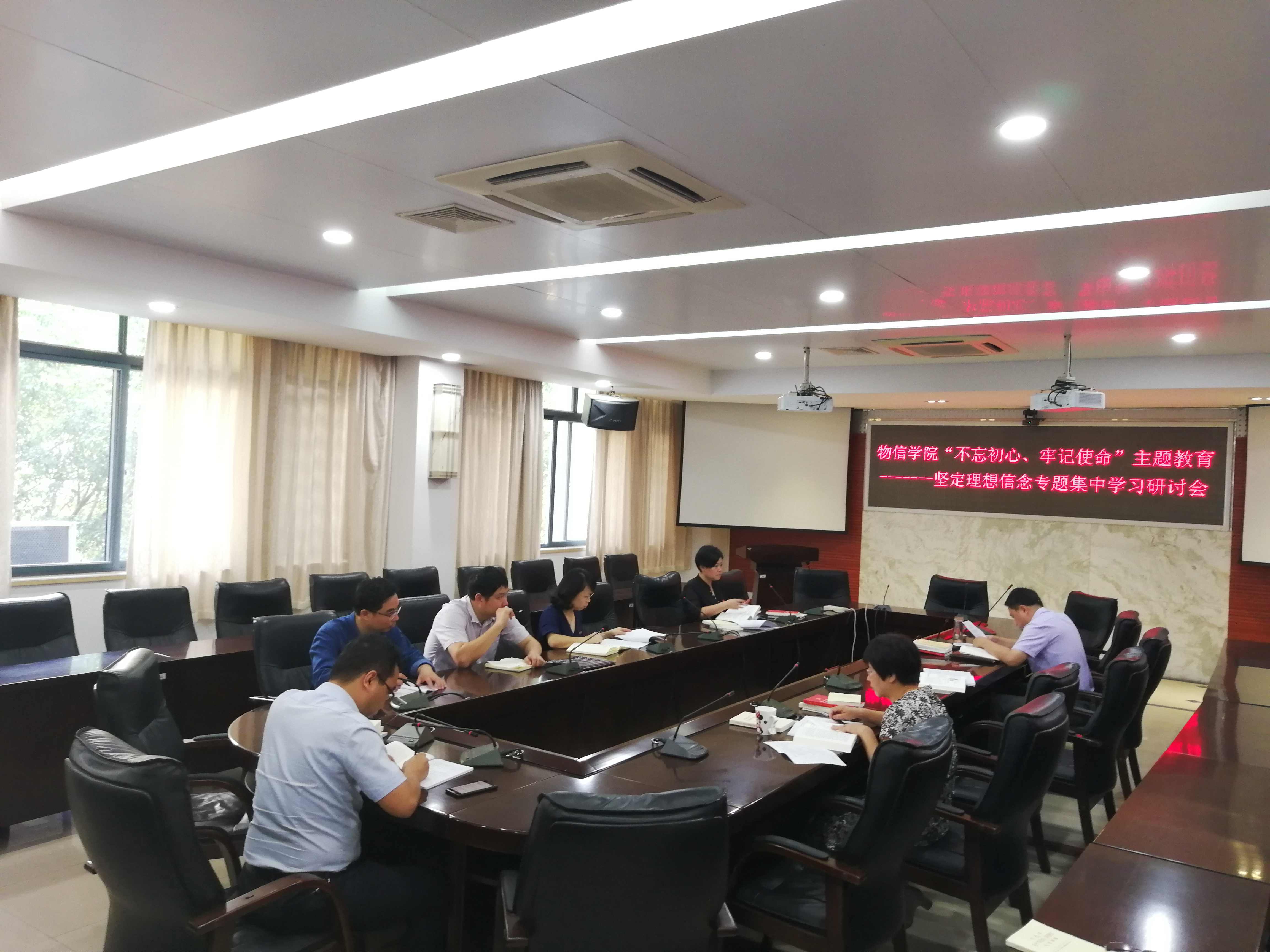 新闻中心讯/9月24日,物理与信息工程学院根据“不忘初心、牢记使命”主题教育的工作安排,组织开展“坚定理想信念”专题集中学习研讨,学院副处级以上领导干部(含校聘)、党委委员参加集中学习研讨等活动。