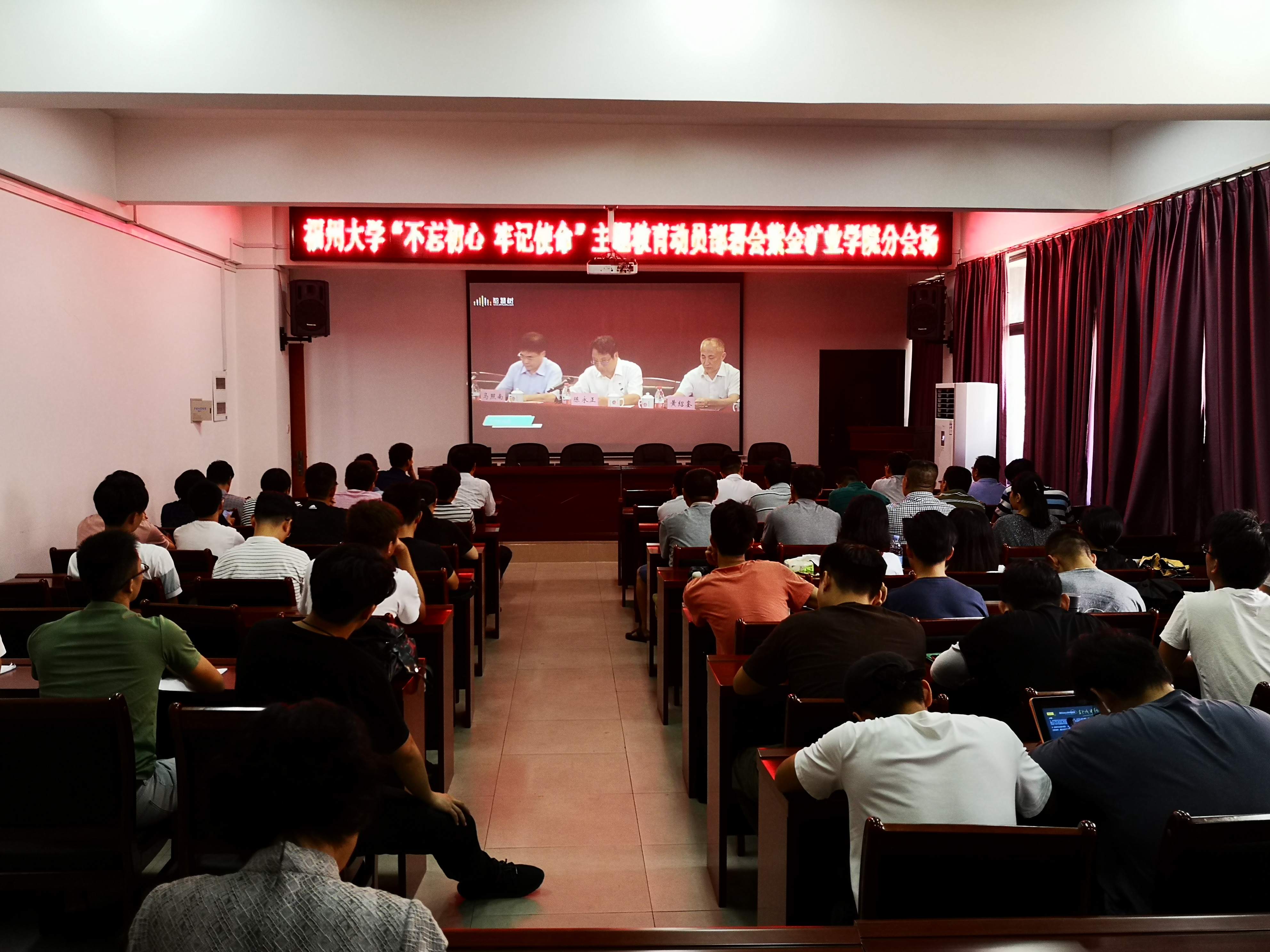 新闻中心讯/9月12日,福州大学党委在图书馆博学厅召开“不忘初心、牢记使命”主题教育动员部署会,紫金矿业学院党委在紫金楼304报告厅设立主题教育动员部署会分会场,学院100余名师生党员参加了分会场会议,认真观看了主会场的实时会议转播。各支部认真组织未能到场参加主题教育动员部署会的师生党员通过网络自行收看会议视频材料,切实领会会议精神。