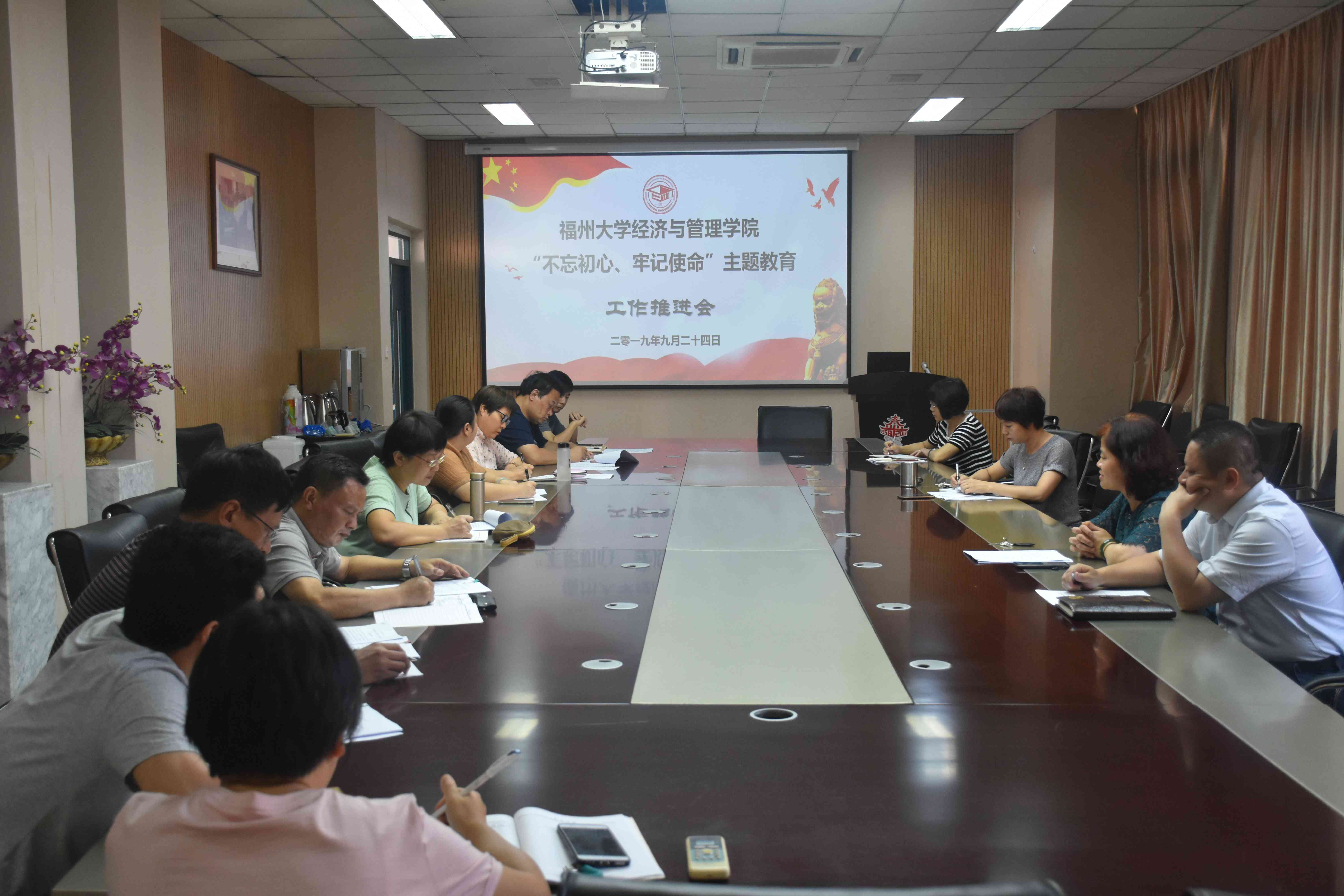 新闻中心讯/9月24日下午,经济与管理学院在经管中楼307会议召开“不忘初心、牢记使命”主题教育工作推进会,学院党委李玲书记、周强副书记、翁穗平副书记和各教工党支部书记参加会议。
