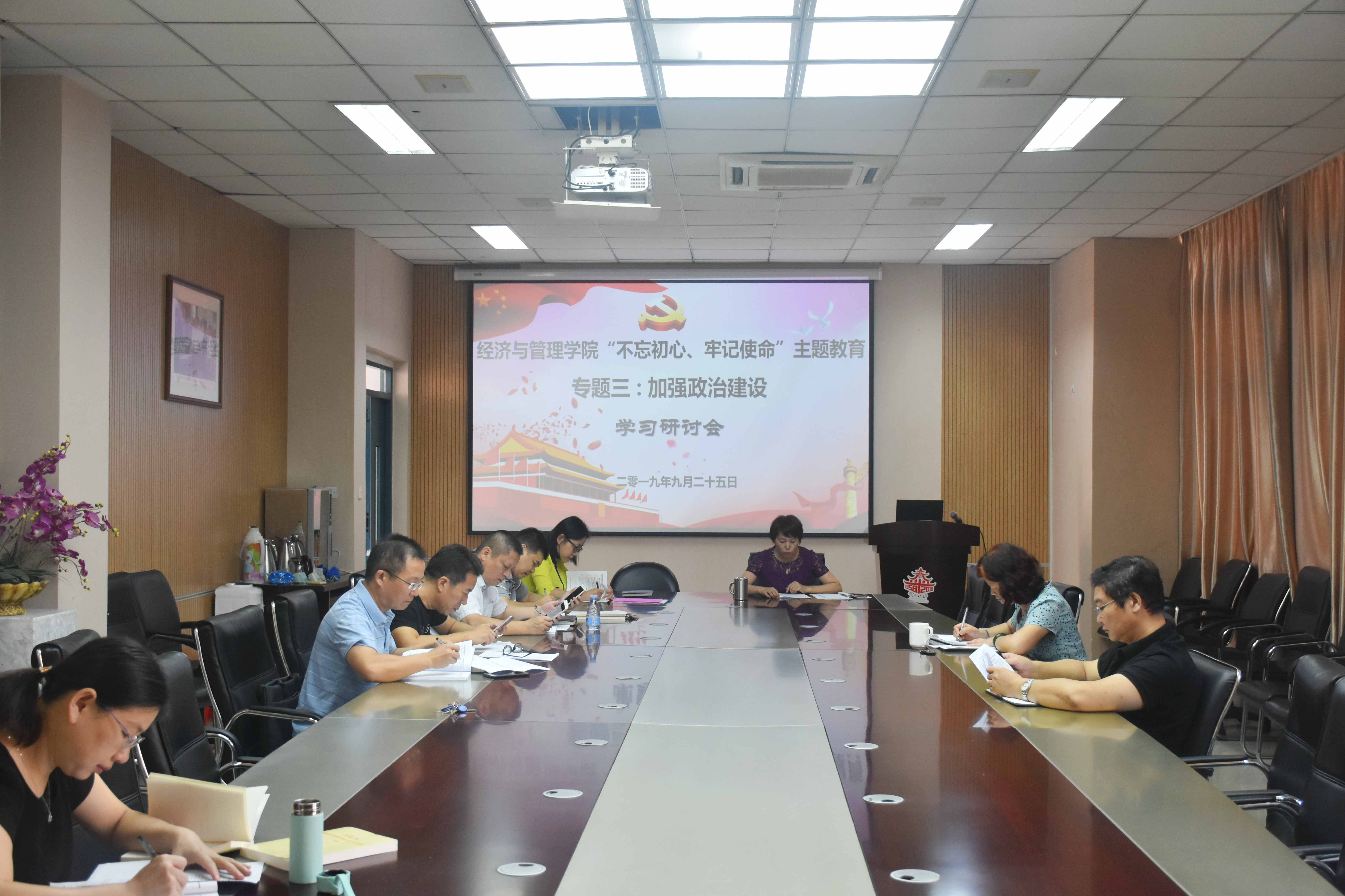 新闻中心讯/9月25日,福州大学经管学院党委组织“不忘初心、牢记使命”主题教育之“加强政治建设”专题三集中学习。学院党政班子成员、党委委员参加了学习。