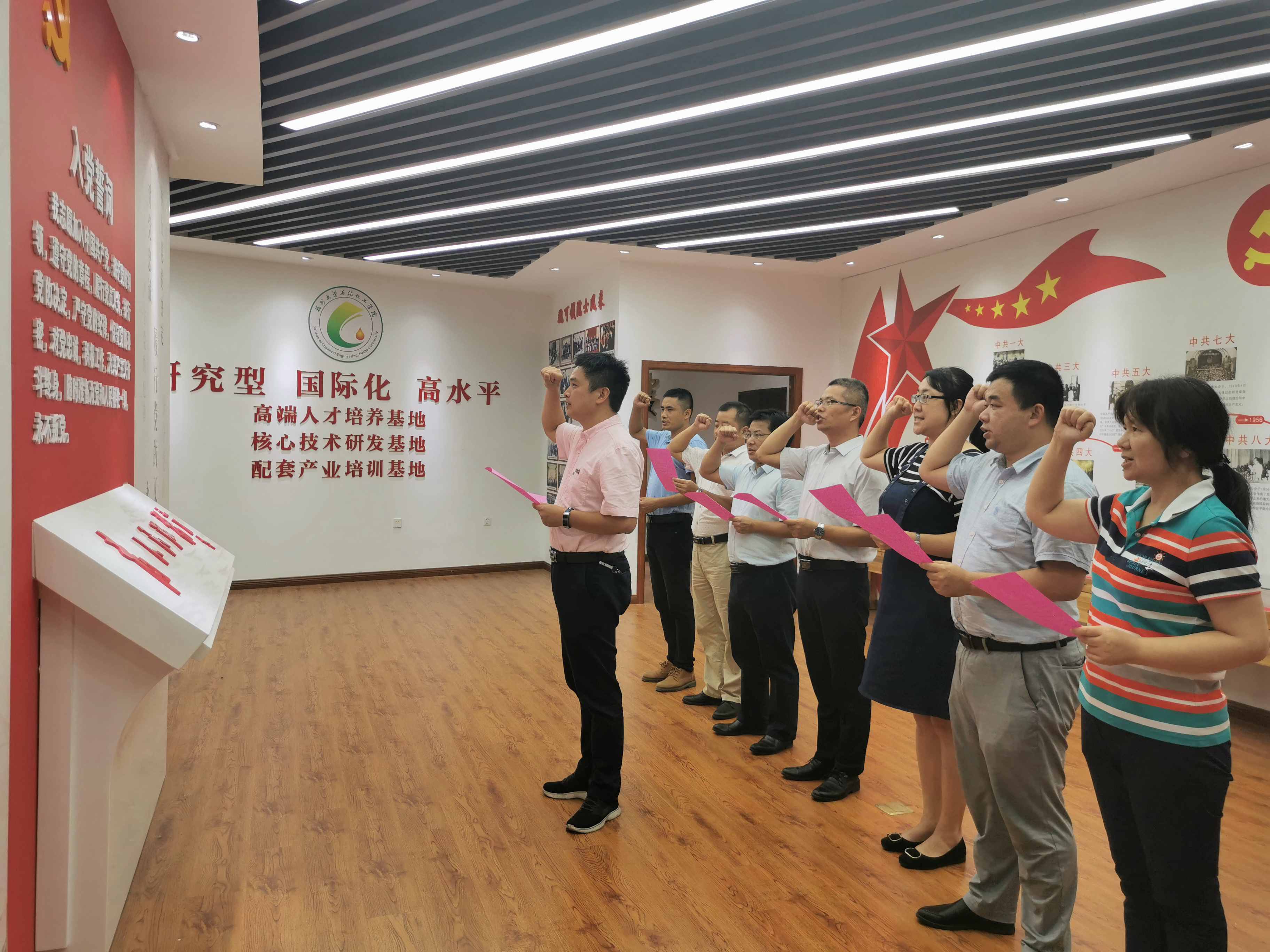 新闻中心讯/9月25日晚,福州大学石油化工学院党委在学院泉港楼309初心堂举行“不忘初心、牢记使命”主题教育重温入党誓词暨第一次专题研讨活动,学院党委书记叶志清、院长鲍晓军、常务副院长侯琳熙、党委副书记岳志强、党委委员江莉龙、赵素英、副院长袁珮、副院长陈全成、工催中心副主任许春华参加了专题研讨活动。
