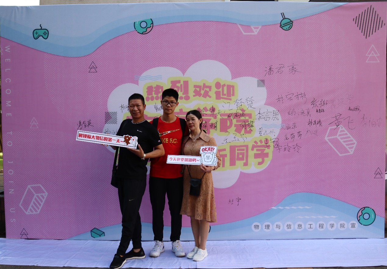 新生们在报到完毕后,纷纷在签名墙上留下自己的姓名,并与父母一同拍照留念,为自己踏入大学校园留下宝贵的纪念。