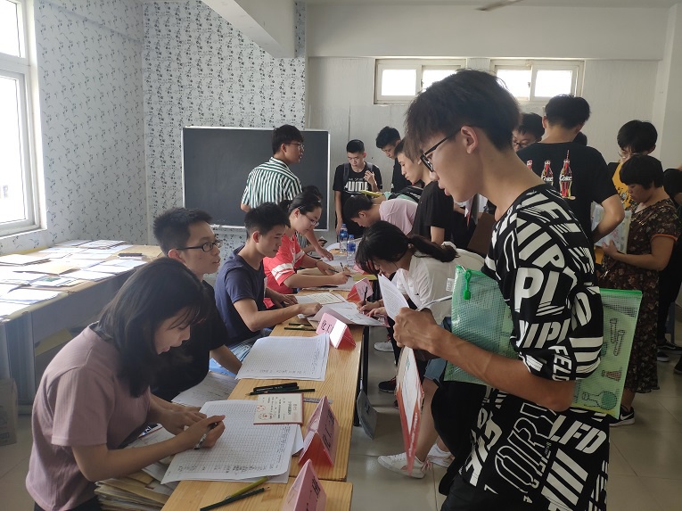 在石化的报到点,每位新生都领到了一份不一样的入学“大礼包”:印有石化学院的卡套、文件夹、学姐学长致新生的一封信、企业的一封信以及和专业紧密相关的3D打印小夜灯。报到地点还开展了一个“每年一拍”活动,给予新生一个与吉祥物小石小化合影留念的机会。同时,学院延续往年的优良传统,组建了迎新志愿者队伍往来奔波,为初来乍到的19级新生搬运行李、引导路线,以石化主人翁的姿态帮助新生。志愿者们体贴至微的服务,让不少新生与家长赞叹不已。