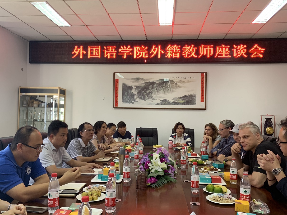 新闻中心讯/作为院党委开展“不忘初心、牢记使命”主题教育工作之一,9月19日,外国语学院在208会议室举办外籍教师座谈会。院党委陈伟民书记、钟晓文副院长、王三强副书记、林继红副院长出席会议,全体外籍教师、各系教研室负责人及外教联络员参加会议。
