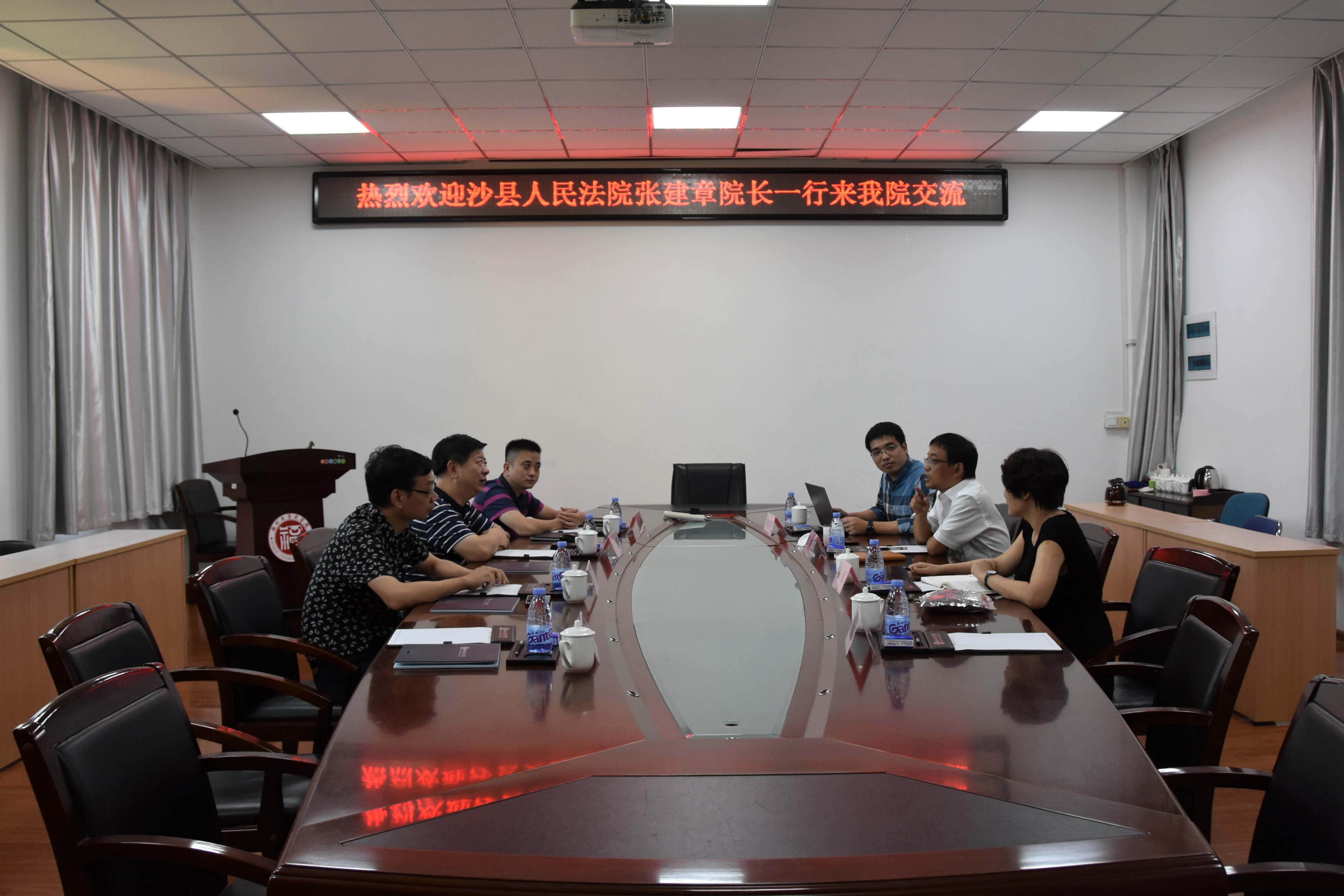 新闻中心讯/9月17日下午,沙县人民法院张建章院长一行莅临法学院于福州大学法学楼233会议室顺利举行座谈会。福州大学法学院党委张泓书记、法学院黄辉院长参加了本次座谈会。