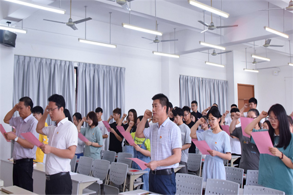 新闻中心讯/6月6日下午,厦门工艺美术学院党委在公教2#208举行了庄严而隆重的入党宣誓仪式。厦门工艺美术学院党委副书记林旭、厦门工艺美术学院党委委员、团委书记、学生科科长陈振兴、各年级辅导员、党办工作人员以及新发展的42名党员参加了宣誓仪式。