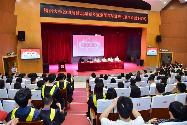新闻中心讯/6月15日上午,建筑与城乡规划学院2019届毕业典礼暨学位授予仪式在图书馆明德厅举行。建筑与城乡规划学院党委书记陈小辉、院长沈振江、副书记陈德铭、副院长罗涛、林志森,校友代表、青年建筑师奖获得者关飞,家长代表、专业教师和辅导员以及全体毕业生参加了毕业典礼。