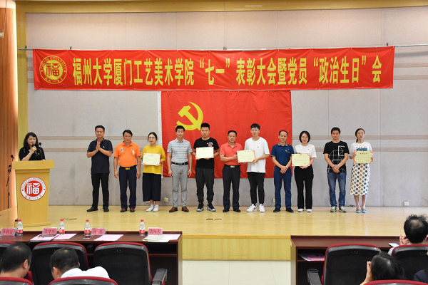 会上,厦门工艺美术学院党委林旭副书记宣读了厦门工艺美术学院党委的表彰决定,厦门工艺美术学院党委委员为受表彰的6个先进党支部和17位优秀共产党员颁发了荣誉证书。接着,为入党时间在6月15日至7月15日的部分师生党员过“政治生日”。各党支部书记为本支部“政治生日”的党员佩戴党徽并发放政治生日卡。“政治生日”的党员在厦门工艺美术学院纪委张华华书记的领誓下面对党旗重温了入党誓词。