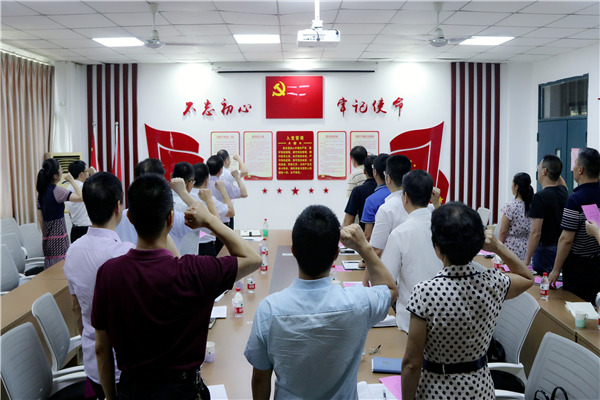 下午2点30分,院党委在学院党建活动室召开党委扩大会。学院党委委员、党政联席会议成员和教工支部书记、院科级干部,参加了本次会议。会议上,院党委书记陈笃钦首先代表院党委传达了对全院党员节日的问候,与大家一起学习了党的成立、发展历程。接着参会的老师们观看了《岁月如歌》、《初心,从未改变》、《我宣誓——》等三个视频材料。随后,在院党委副书记傅茂松的带领下,参会的老师们重温了入党誓词。
