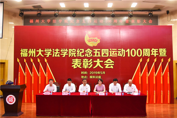 新闻中心讯/5月16日下午,福州大学法学院纪念五四运动100周年暨表彰大会于福州大学法学院模拟法庭成功举办。福州大学法学院党委书记张泓、院长黄辉,福州大学团委副书记林航、福州大学法学院副书记蔡剑英、副院长蔡晓荣,德恒律师事务所合伙人张辉律师、丁文辉律师、林斌律师、运营总监谢兰兰女士出席本次大会。法学院全体学生及青年教职工参加此次表彰大会。