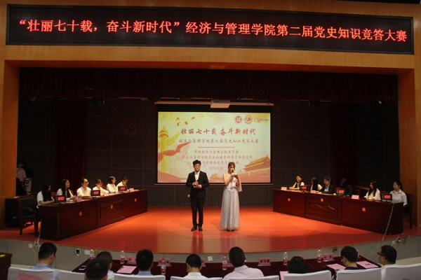 新闻中心讯/5月18日下午,由经济与管理学院党委主办、经管学院学生公寓管理委员会党支部和党员服务部联合承办的“壮丽七十载,奋斗新时代”第二届党史知识竞答大赛在图书馆明德厅顺利举行。校与学院相关领导老师到场指导。