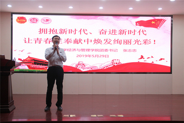 新闻中心讯/5月29日晚,经济与管理学院以“拥抱新时代、奋进新时代,让青春在奉献中焕发绚丽光彩”为主题的团课在经管北楼召开,经管学院团委书记张志忠老师为团委、学生会副部级以上干部主讲了一堂精彩而意义深远的团课,团委、学生会干部100余人参加了本次学习。