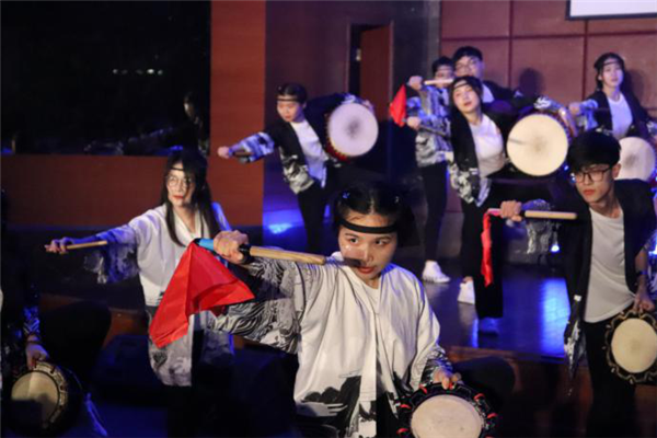 此外,2019届日语班同学与外籍教师黑冈佳柾、池泽充弘合唱歌曲《那些年》引领在场毕业生们回忆大学的美好时光;大一到大四太鼓队成员带来的太鼓节目《凧舞琉风》更是以气势磅礴的表演展现了外国语学院学子的风采,让在场观众为之震撼。唐斌湖辅导员表演的隐藏节目《一唐功夫》以流畅潇洒的武术动作将现场气氛推向高潮。最后,晚会在热烈的氛围中落下帷幕。(文、图/郭恬媛)