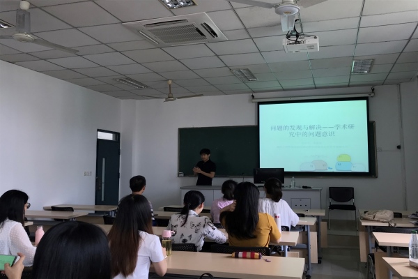 吴业贤同学从语言学、翻译、教学法和文学领域各找一个研究问题,引入问题意识的核心,最后提出相关意见和建议。他用幽默风趣的语言和详实的例证向同学们讲解了学术研究的步骤:发现问题---查找资料---起草框架---撰写行文---参考文献---规范格式---总结润色,从另一角度,也可以是:问题意识---文献检索---逻辑---文笔---学术道德---规范。他特别强调了问题意识的重要性。他还分享了自己收集的涉及各个方面的研究问题,并以此为例说明自己是如何形成问题意识,并打算如何解决的。最后,向研一同学推荐一些有助于提高学术素养的书籍以及分享自己的学习方法。分享结束后,研究生同学纷纷就各自在现阶段遇到的问题,与吴业贤同学展开学术的探讨。活动在浓郁的学习氛围中圆满结束。