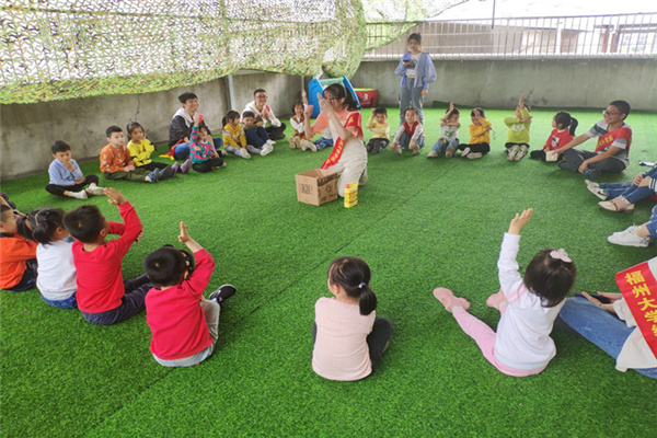 “姐姐,我知道!这个肥皂是用来洗手的,饭前饭后都要洗手手”,孩子们稚嫩的笑语让活动现场更加活泼生动。志愿者们利用有趣的“盲盒摸物”游戏,引导小孩子们认识抵抗细菌的生活清洁品,如肥皂、洗手液等;同时,志愿者们还用别出心裁的情景剧表演,普及如何拨打求救电话、同伴遇险的正确急救方式、如何处理小伤等生活安全常识;还向小朋友们演示了简单的绷带包扎技能。在此次活动中,小朋友们展现出了极大的热情和兴趣,教学成效高,志愿者们也因此露出了满足的笑容。