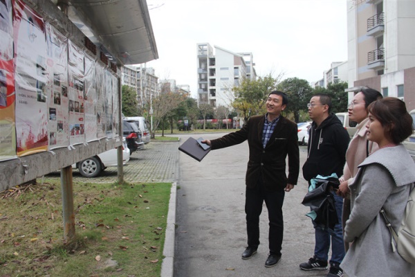 新闻中心讯/4月3日下午,经济与管理学院团委书记张志忠、团委副书记牛秋月、辅导员和学生干部一起来到生活区,进行社区检查及宣传整改工作,并对经管学院生活社区的宣传栏布置,门厅布置,电动车停放等多方面提出了指导意见。