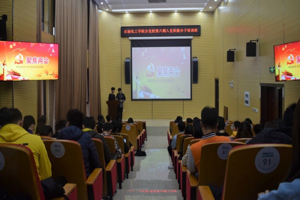 新闻中心讯/4月13日上午,石油化工学院分党校第六期入党积极分子培训班微党课之“化工人讲两会” 在泉港楼南101报告厅顺利举行。
