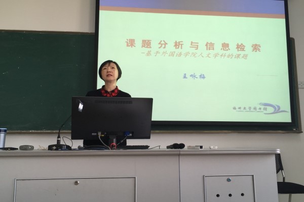 新闻中心讯/3月28日下午,图书馆信息中心的王咏梅老师给外国语学院研究生做了主题为“课题分析与信息检索”的讲座,就开题报考撰写和小论文发表刊物做了相关介绍。讲座在外国语学院4楼举行。