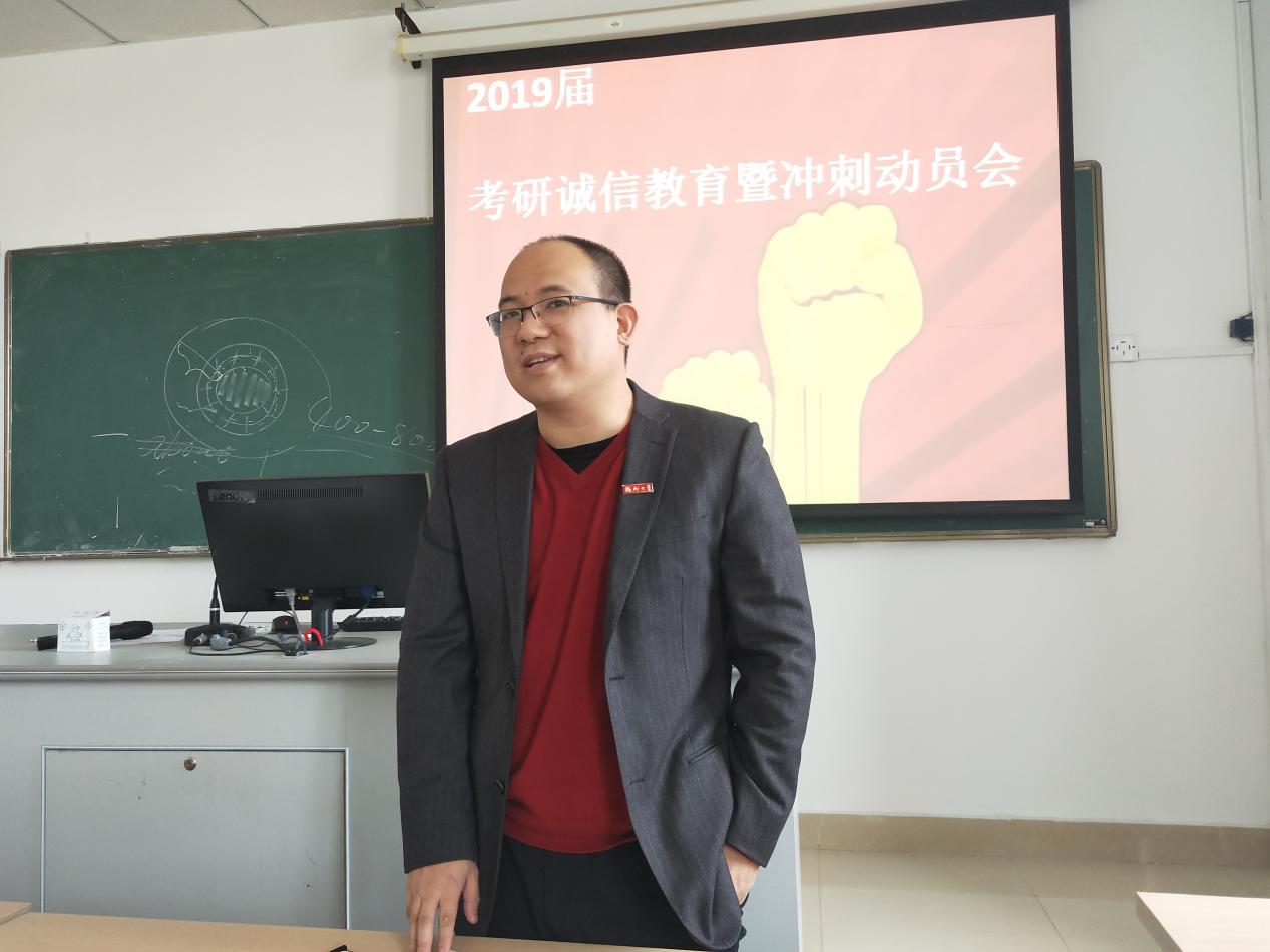 新闻中心讯/12月17日,外国语学院2019届考研诚信教育暨冲刺动员会在院办教学楼405室顺利展开,师生们一起交流考研经验,答疑考研疑惑。