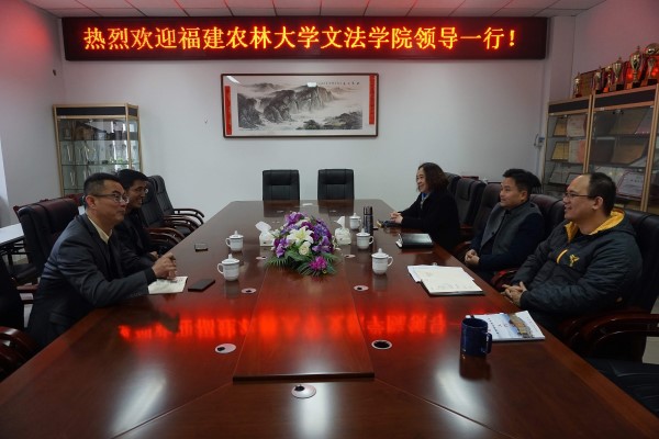 新闻中心讯/3月1日,福建农林大学文法学院肖红新书记、傅超波院长就党建与思想政治教育、学科建设、大学英语教学改革等工作到院交流。外国语学院党委书记陈伟民、副书记王三强、副院长林继红参加交流。