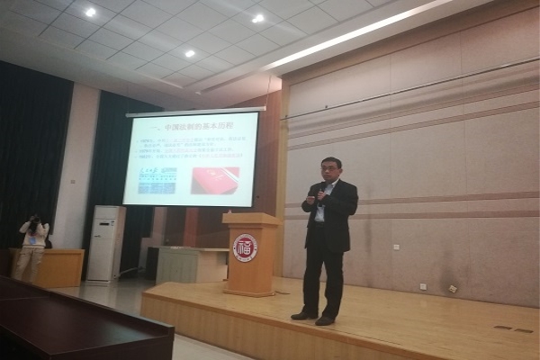 黄辉教授主要从“中国法治的基本历程”“法制与法治的内涵和区别”“全面推进依法治国基本内容”三个方面讲述了中国的法治建设。讲座中,黄教授先介绍了中国法治的基本历程。从1978年十一届三中全会提出“有法可依,有法必依,执法必严,违法必究”的法治建设方针至今,中国经历了法律制度体系渐渐完善的过程,完成了从无法可依到有法可依的历史性转变。黄教授还阐释了“法制”与“法治”的内涵与区别。“法制”是制度体系,是全面推进法制中国建设的基本条件。而“法治”是经济发展、社会进步的客观要求,是必须坚持的治理方法。同时黄教授强调了依法治国的重要性。最后,黄教授提出了必须坚持走中国特色社会主义法治道路,建设中国特色社会主义法治体系;完善以宪法为核心的社会主义法律体系等推进依法治国的基本内容。
