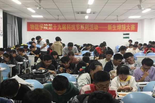 新闻中心讯/12月2日,第十九届新生焊接大赛在物信学院北楼108实验室以及南楼111顺利展开。本次大赛由物信学院学生会科创中心科技赛事部和电子社共同承办,部门成员担任评委。由物信学院2018级新生组成的近80支队伍参与其中。