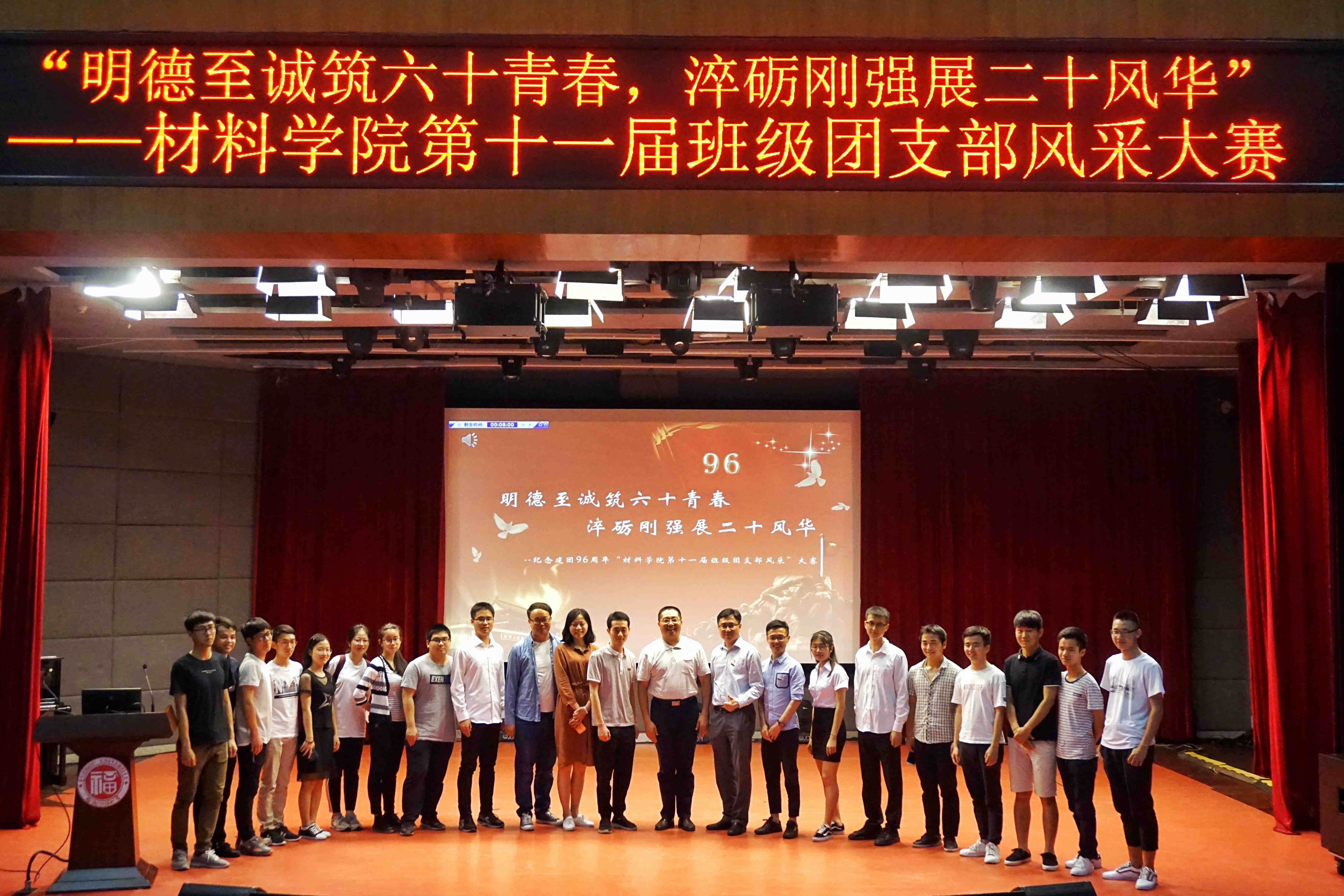新闻中心讯/“明德至诚筑六十青春,淬砺刚强展二十风华”,5月6号晚,材料学院第十一届班级团支部风采大赛在图书馆博学厅举行。校团委、学生会学生事务管理科相关负责人及学院领导、各班班主任出席了此次比赛。